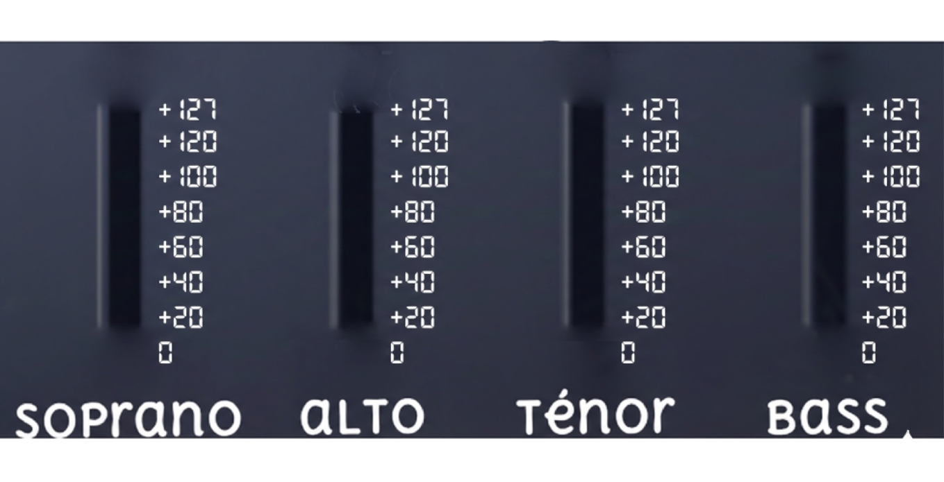 Split voices by sliding volumes per voices SATB, mixer desktop